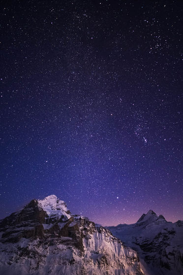 Grindelwald Winter Nights is a stunning fine art print that captures the beauty and tranquility of the Swiss Alps. I took this photograph during a clear winter night, when the sky was filled with stars and the snow-covered mountain glowed with a blueish-purple hue from a distant city behind it. It is one of my favourite images, as it evokes a sense of wonder and awe at the majesty of nature. This print is available in various sizes, printed on Hahnemühle Photo Rag 308g/m2, a high-quality paper that enhances the colours and details of the image.